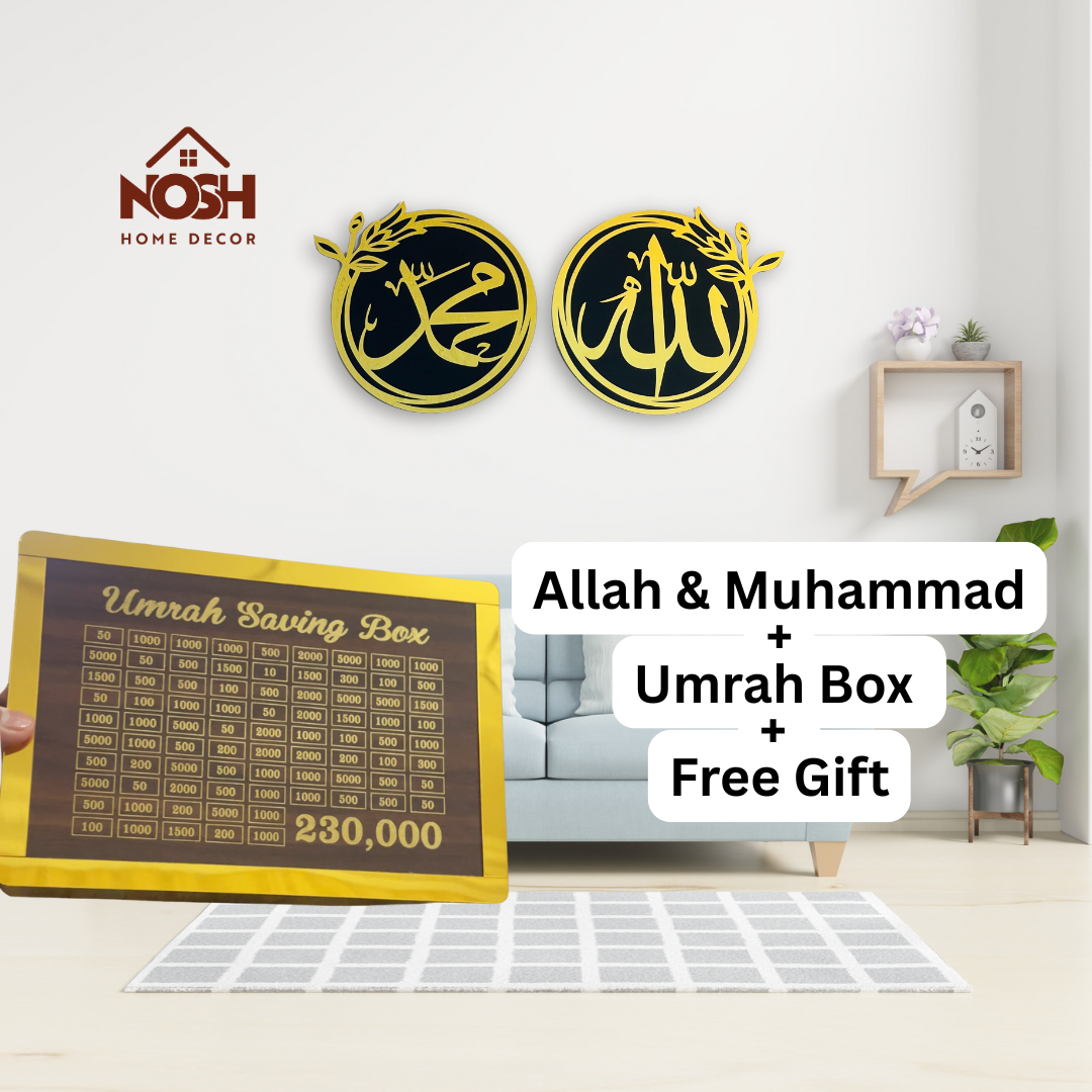 Duniya kay Do sab say khubsurat naam ab bnao apnay ghar ki shaan sath ek Umrah Box bhi jo Umrah kay khawab ko pura karay